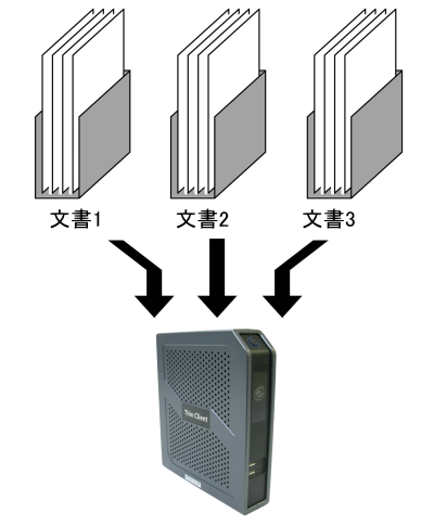 本機では、新しく読み取ったページは、 現在開いている文書の末尾に追加されます。 別の文書に移動してからページを読み取った場合、 そのページは現在開かれている文書に追加されますので注意してください。