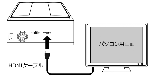 パソコン用の画面を接続する場合、 お持ちのパソコンと画面をつないでいるケーブル (HDMIケーブル) を使って、 本機と画面をそのまま接続することができます。